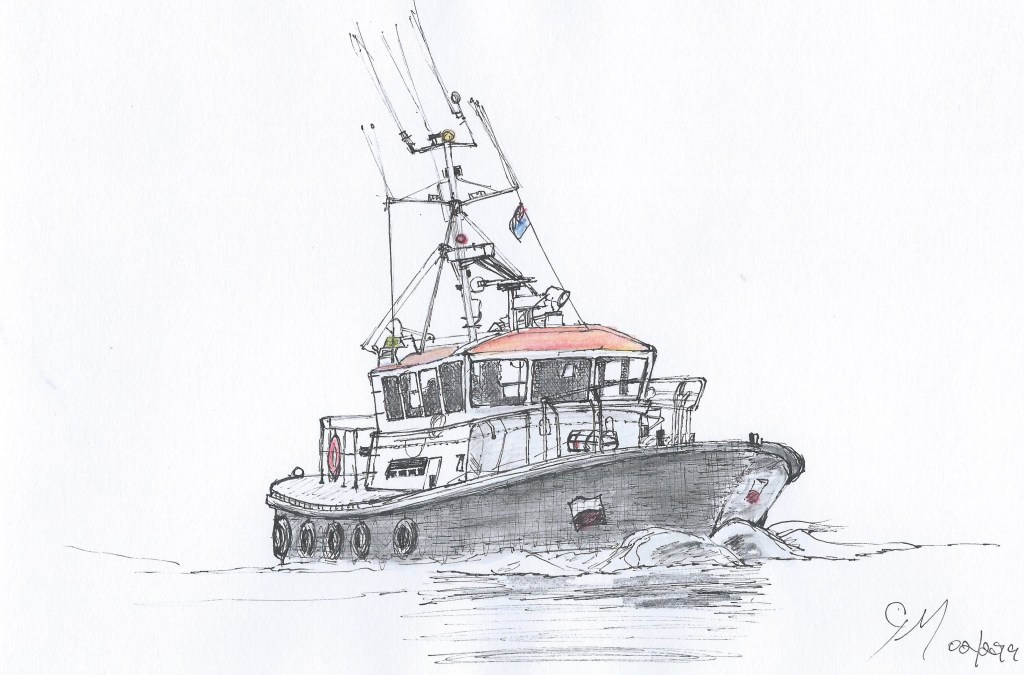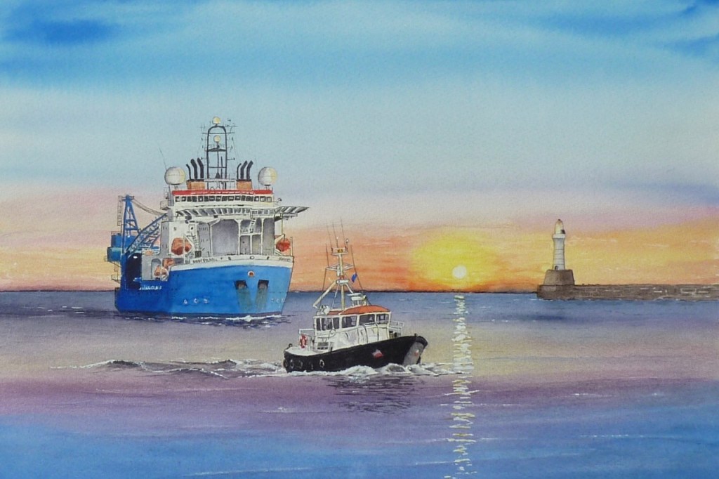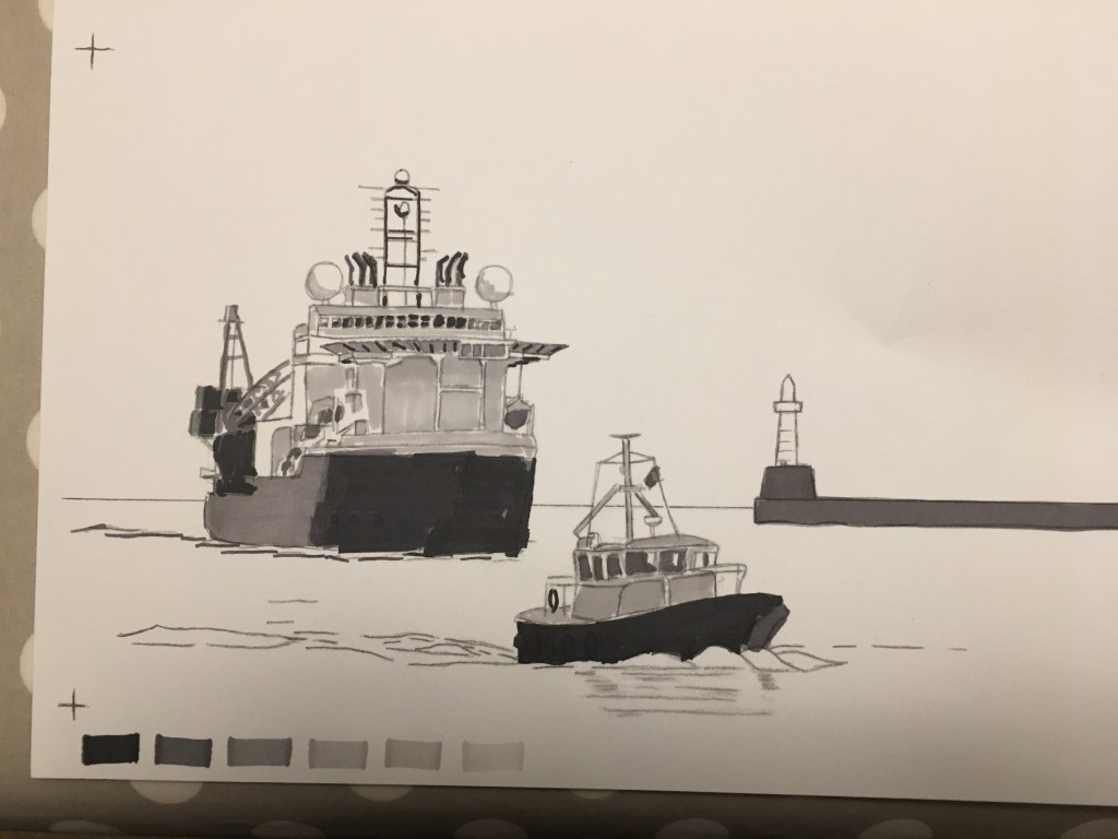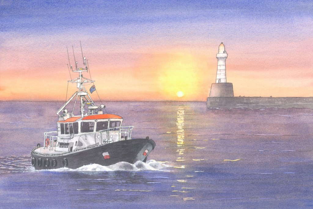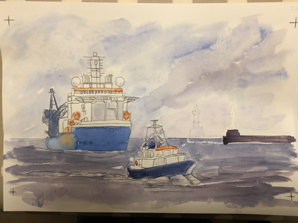 However, at this stage I thought that the pilot boat on its own might make a good painting so I did a reasonably detailed sketch of it, which encouraged me to do a full watercolour of Sea Haven on its own, at sunrise.