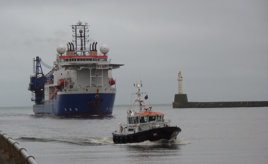 This is my original photograph, taken around noon on 06.12.2018 near the entrance to Aberdeen Harbour, close to the old Harbourmaster’s Tower, and cropped to give a reasonable composition. As you can see, it was a pretty cold, grey winter’s day. This was taken about six weeks prior to the name change from ‘Bibby Polaris’ to ‘Rever Polaris’.