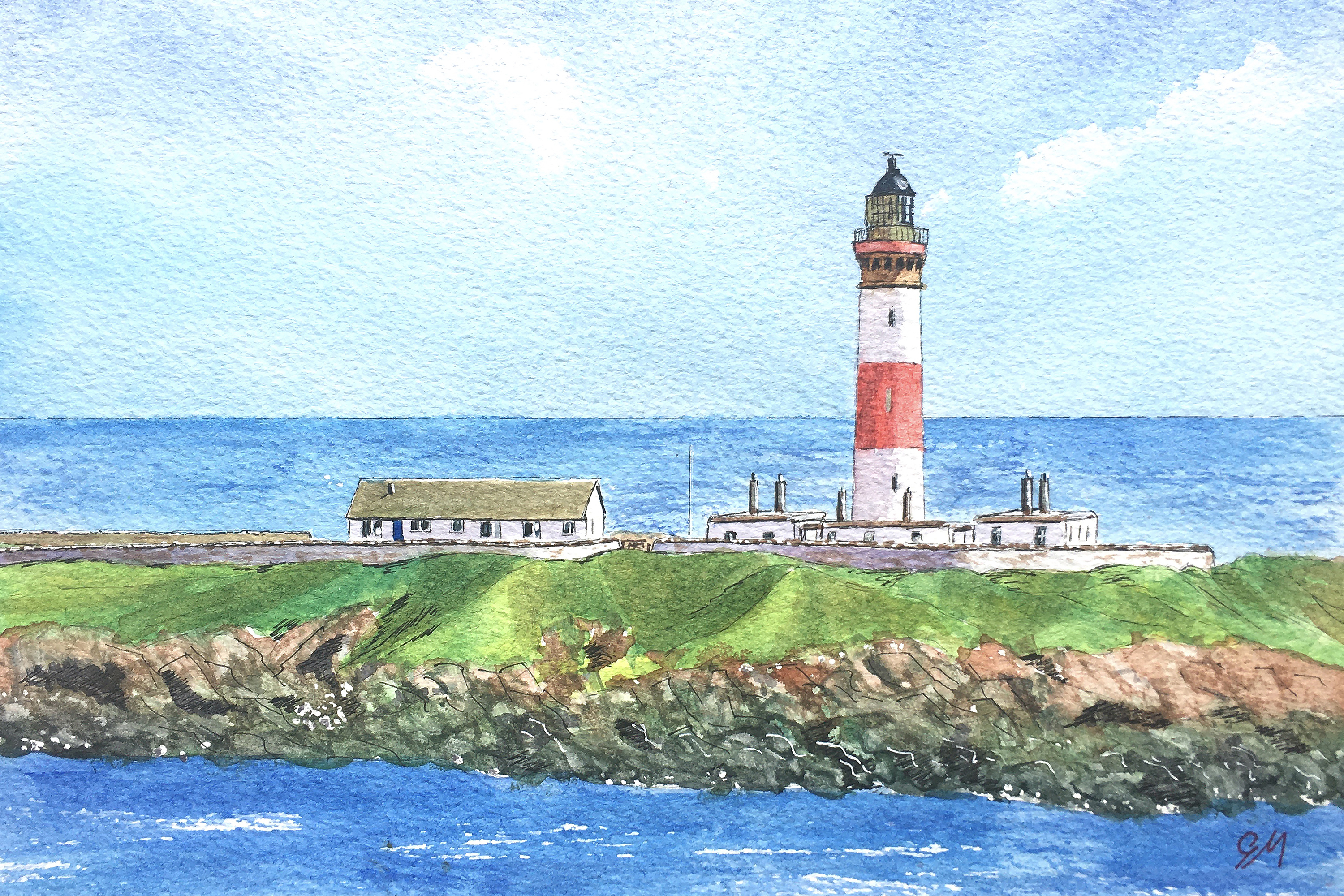 The two paintings shown here were done for myself, for the pure pleasure of painting them. One is Buchanness Lighthouse on the Aberdeenshire coast near Peterhead and the other is a scene from rural Aberdeenshire showing Bennachie in the distance. Both scenes bring back happy memories for me.
