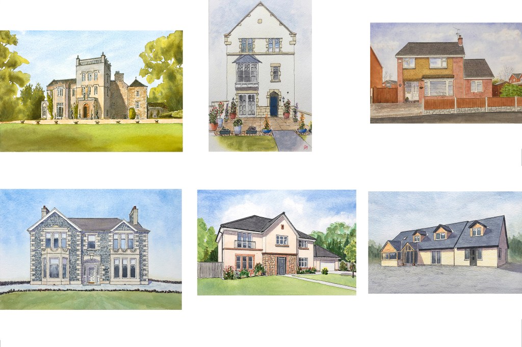 These are some of the building portraits I’ve done over the past six months or so, anniversary, house-warming, mother’s day, etc, etc gifts. All happy customers so far.