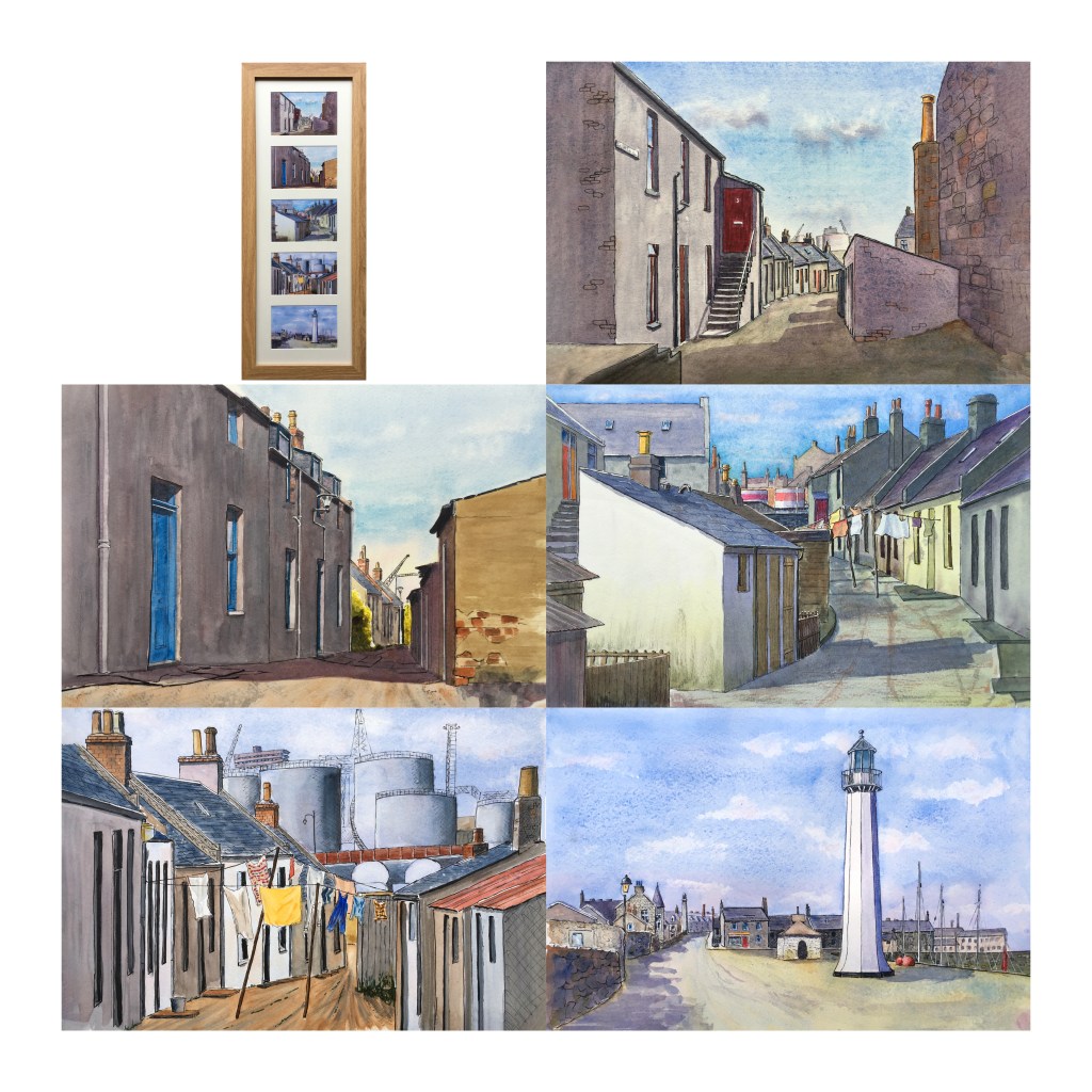 I’ve done a series of five pen and watercolour paintings of scenes in and around Old Torry, based on the memories and photos of some of those that knew the area.