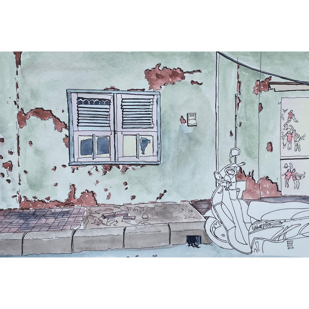 I’ve attached a few examples of paintings I’ve done in this way, based mostly on demonstrations in Leisure Painter Magazine, although the street scene with scooter is my attempt at reproducing an original work by Sabine Israel which I found in the book “Pen and Ink” by James Hobbs.