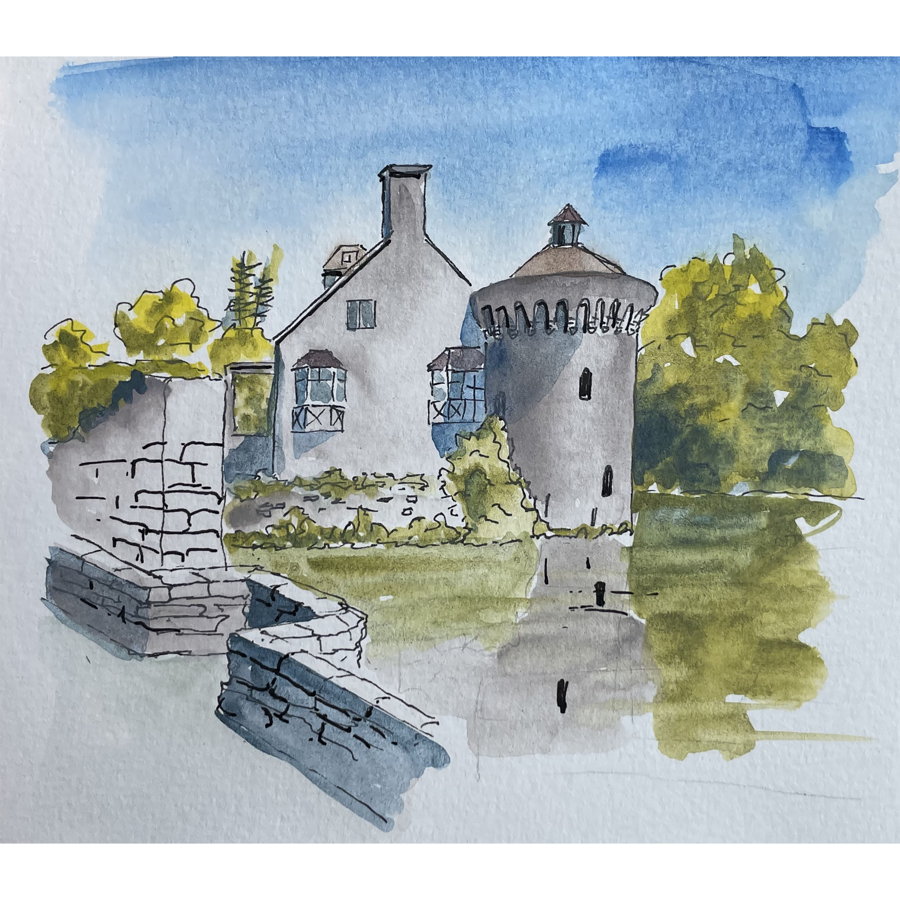 I’ve attached a few examples of paintings I’ve done in this way, based mostly on demonstrations in Leisure Painter Magazine, although the street scene with scooter is my attempt at reproducing an original work by Sabine Israel which I found in the book “Pen and Ink” by James Hobbs.