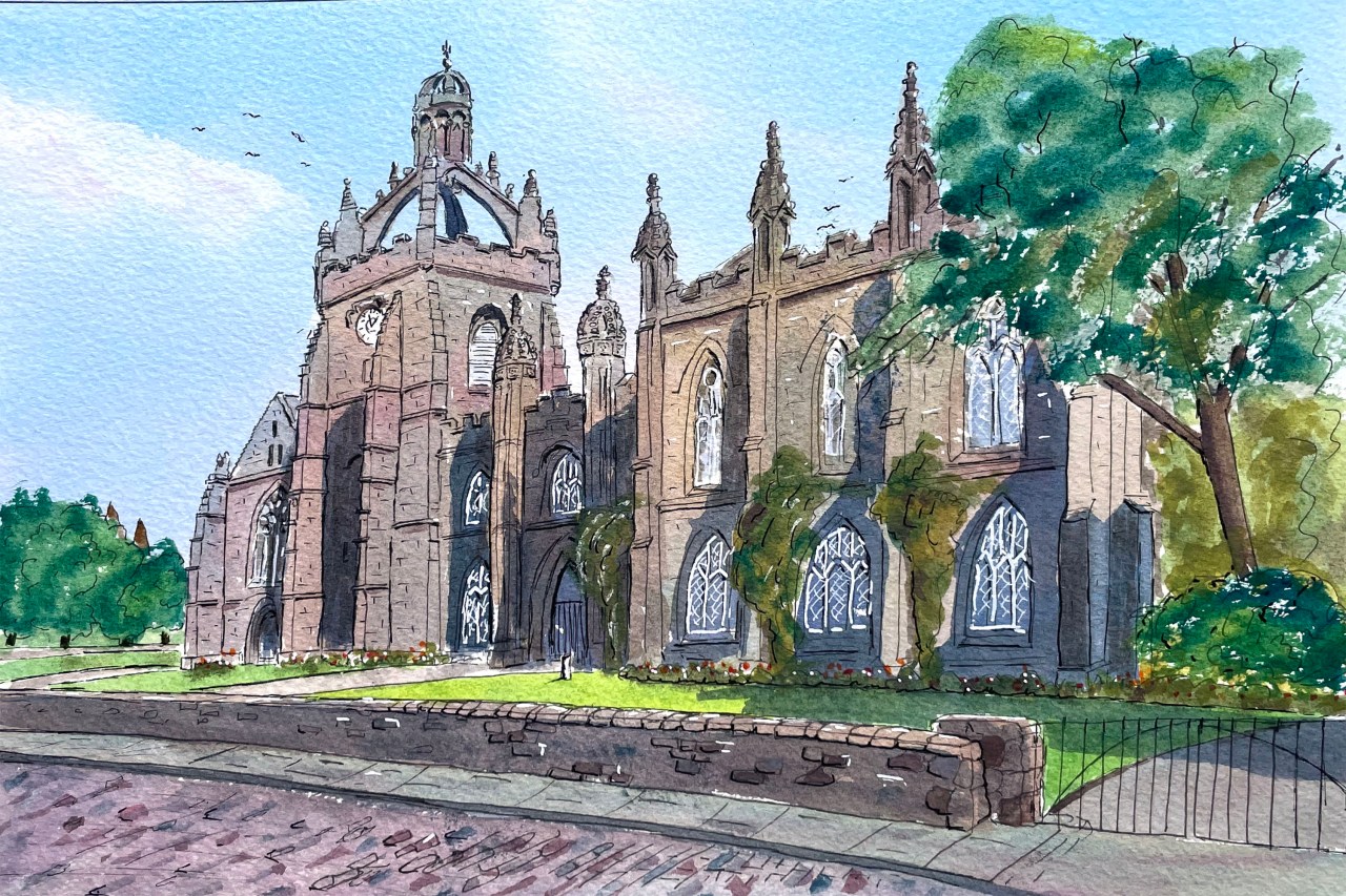 Hello Johanna. Found it! For the avoidance of doubt, this is a pen & watercolour painting, the painted area is approximately 31x21cm on ‘The Langton’ 300gsm cold pressed watercolour paper using Winsor & Newton Professional Quality paints. If you wanted to buy it it’ll be supplied in a mount ready for framing (an ‘off-the-shelf’ 16″ x 12″ frame would be suitable). The cost would be £40 plus delivery. Regards. Gordon