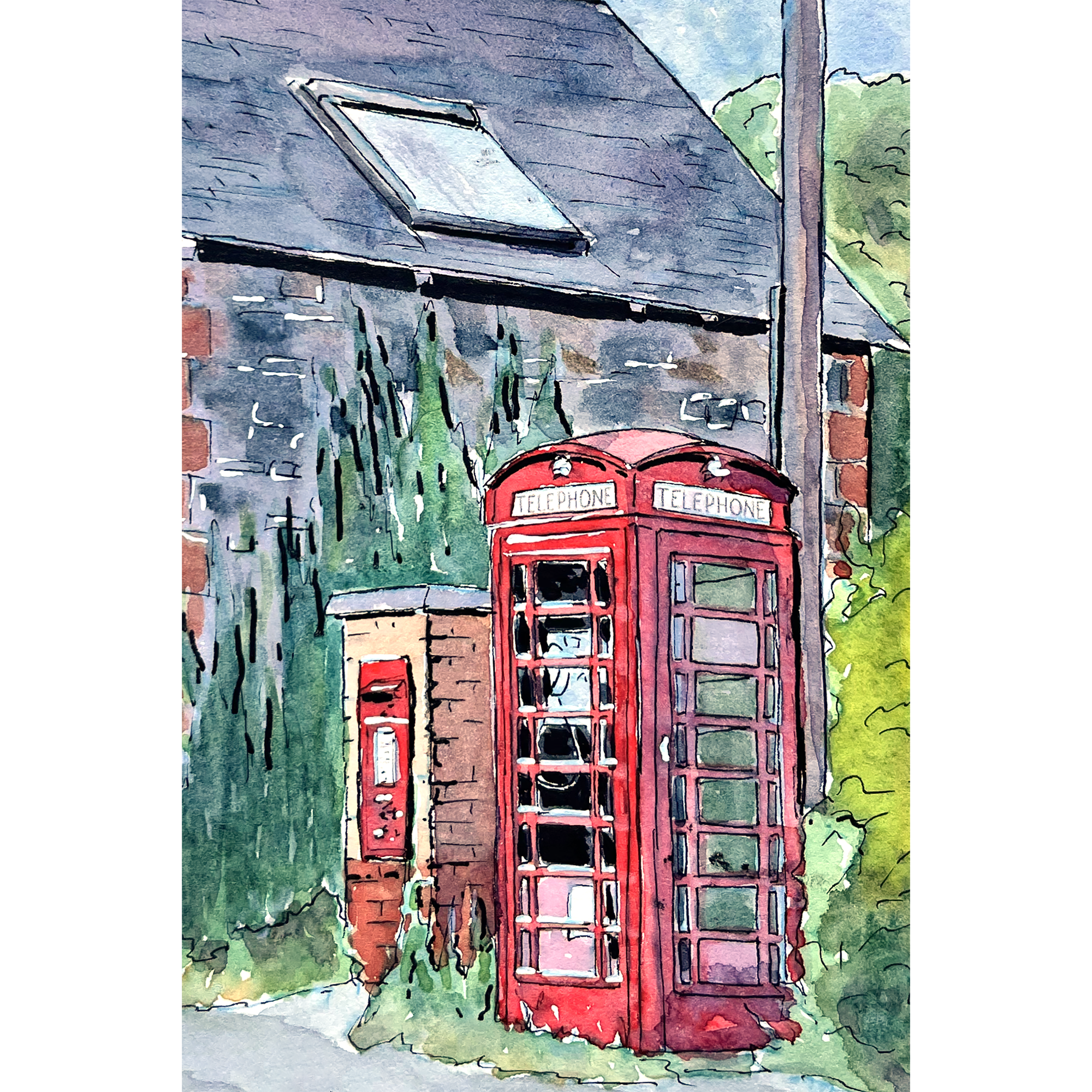 Once a common sight in communities across the United Kingdom, I hope that my painting of the old phone box and post box evokes happy memories of a simpler way of life that’s fast disappearing since the advent of email and the mobile phone.