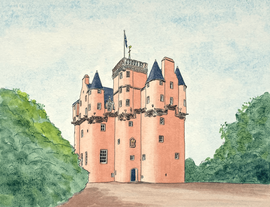 I’ve just finished this pen & watercolour painting of Craigievar Castle, a fairytale Scottish castle currently undergoing conservation until 2024. The Forbes family resided here for over 300 years before placing it in the care of the National Trust for Scotland in the 1960s.