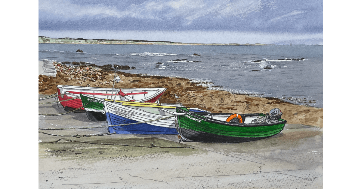 This is a nice scene of the boats in Buchanhaven Harbour, with the Buchan coastline and Rattray Head Lighthouse in the distance, which I recently painted based on my own photograph. It’s a scene I pass almost every day when walking my dog. My Dad’s side of the family were fishermen in the neighbouring port of Fraserburgh which probably explains why I’m drawn to scenes like this. What inspires you?